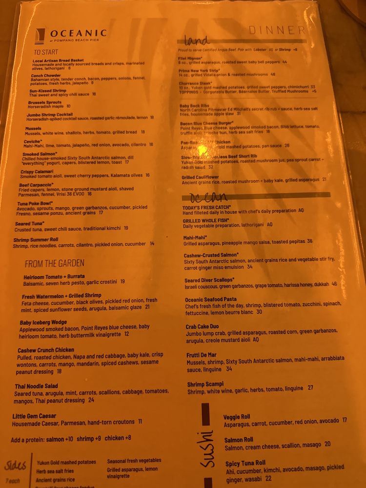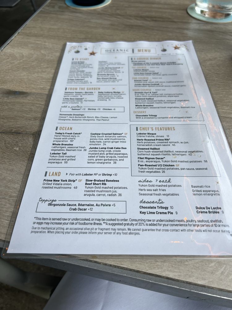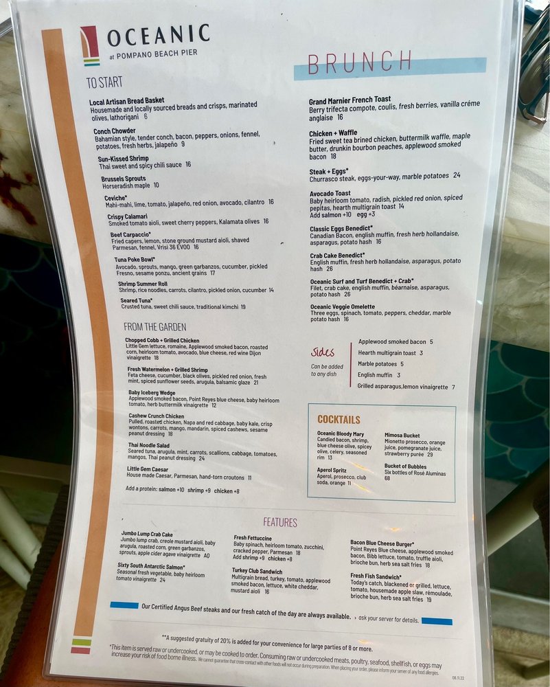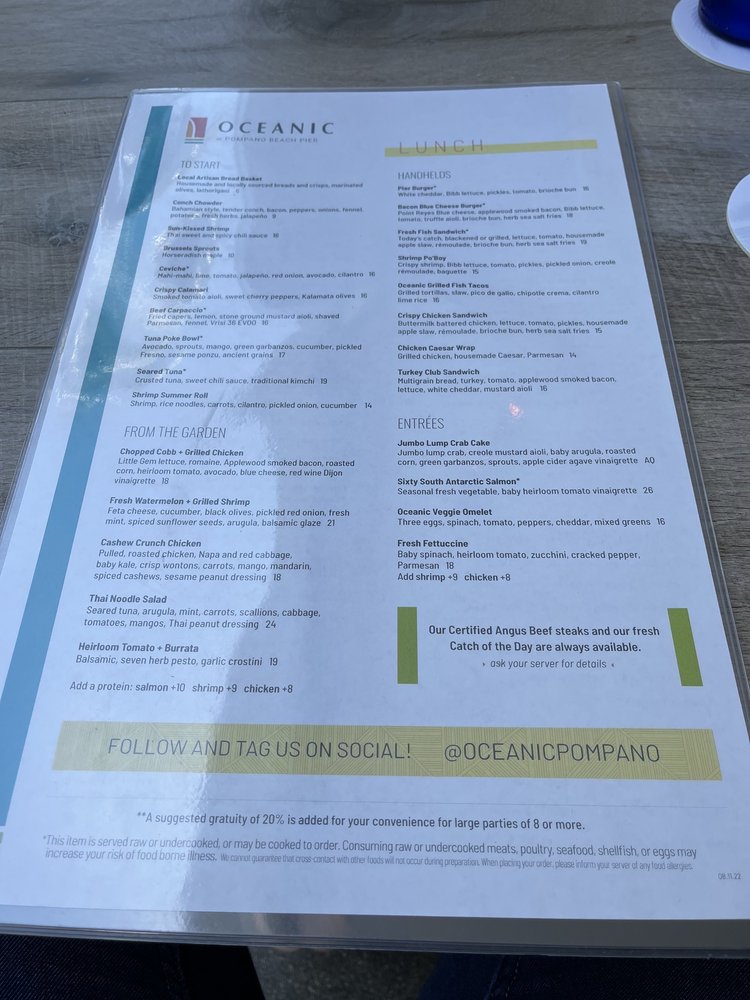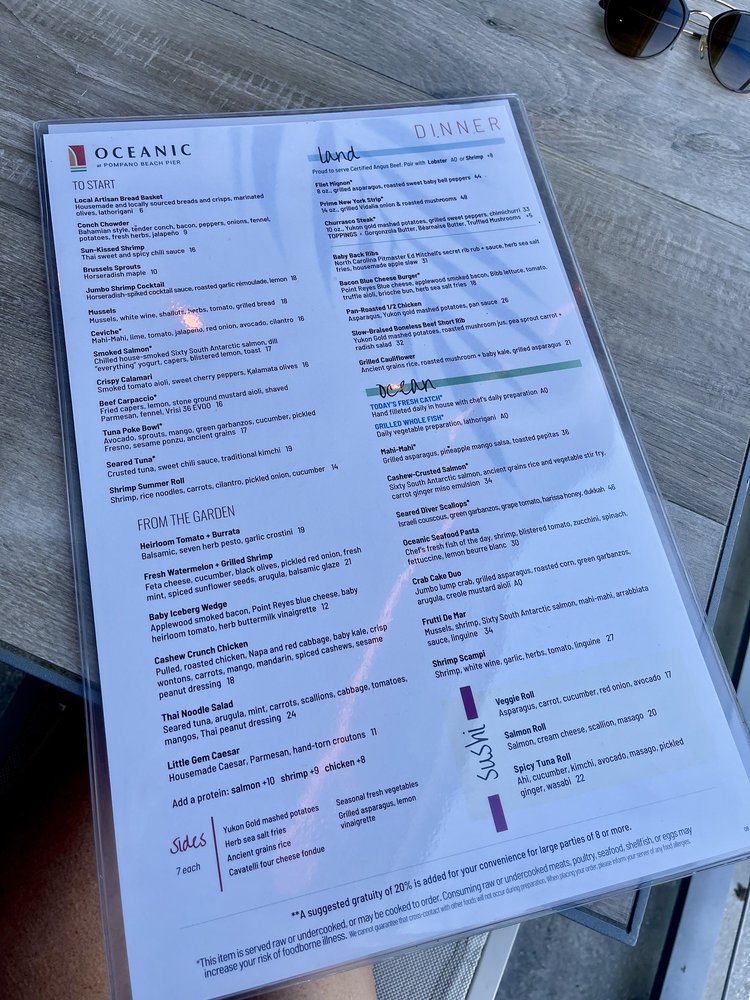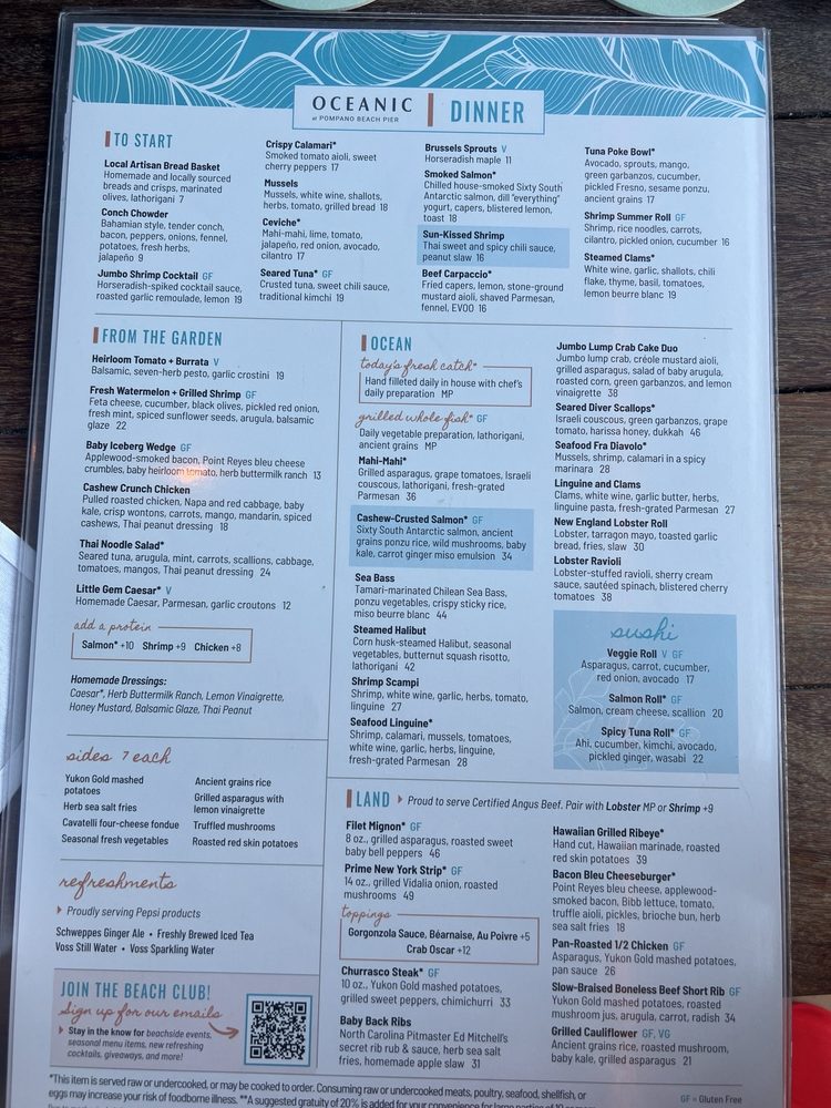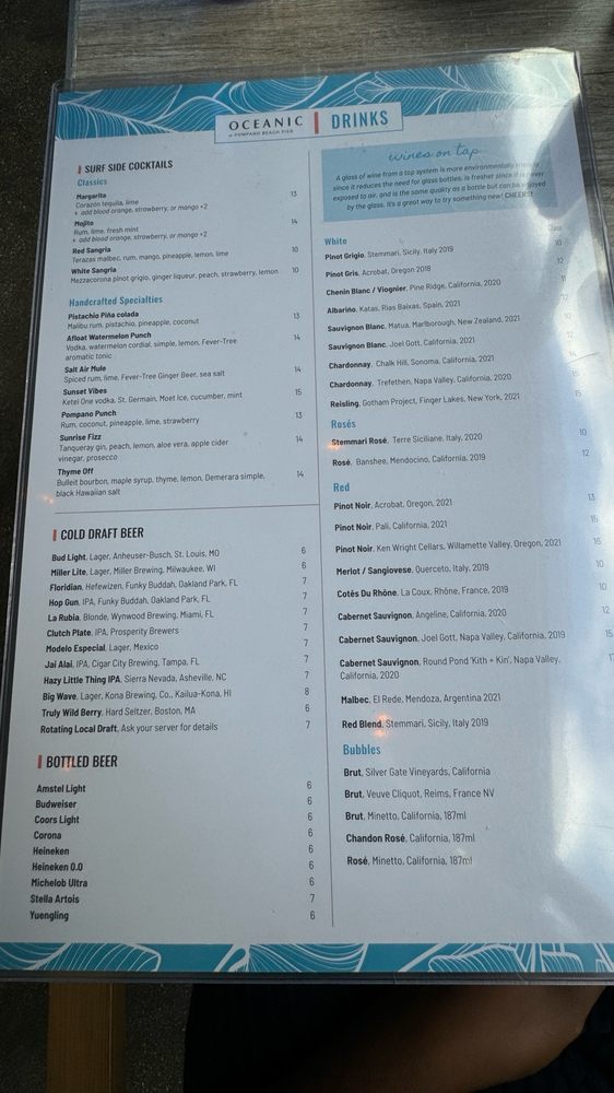 Oceanic is a trendy and upscale seafood restaurant located in Pompano Beach, FL. Offering a wide range of options for both vegetarians and keto enthusiasts, this establishment is perfect for any occasion, from brunch to dinner. The menu features a variety of dishes, from veggie omelettes to Mahi sandwiches, all prepared with precision and served with professional, top-notch service. The outdoor seating provides a beautiful view of the ocean, creating a romantic and intimate atmosphere for diners. Customer reviews rave about the Grand Marnier French Toast and the sea bass with beurre blanc, highlighting the exceptional flavors and quality of the dishes. Despite a few minor temperature control issues on the patio, the overall experience at Oceanic is described as fantastic, with fantastic service, great ambiance, and delicious food. If you're looking for a memorable dining experience with a view, Oceanic is the place to be.